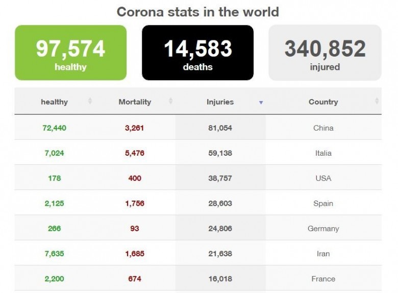 Arab News Corona Spread Statistics worldwide - Update Pulse location Abid Latif Admin posted on 5 years ago — updated on 1 second ago 2,031 views Corona spread in the world stats Today Update 22.03.2020 Corona Update location Statistics worldwide Comments Comment 0 comment Best Oldest Newest Write the first comment for this!